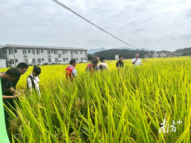 近日,清远市农业农村局组织专家组对省农业农村厅下达的中央财政资金项目《2024年连州水稻绿色高产高效创建项目》晚季示范片进行测产验收。在测产验收现场,连片等待收割的稻田内稻谷颗粒饱满,颜色金黄。 测产验收专家组实地考察示范片晚稻长势,并表示现场田间样本整齐一致,株叶形态及落色较好。