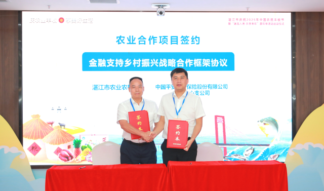 近年来,湛江深入推进“百千万工程”,大力发展特色优势农业,大力推动海洋渔业转型升级。在现场,湛江市农业农村局与中国平安财产保险股份有限公司湛江中心支公司签订金融支持乡村振兴战略合作框架协议,政府部门与金融机构间强化合作,携手共赢。