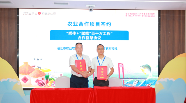 以“媒体+”为擎,湛江整合全产业链资源,推动“湛品”接入全媒体渠道开拓市场,实现品牌溢价和产业价值提升。活动现场,湛江市农业农村局与南方农村报社签订“媒体+”赋能“百千万工程”合作框架协议,将媒体资源深度融入农产品流通全链条,力推更多“湛品”火爆出圈,打造“媒体+”助力乡村全面振兴的湛江样本。